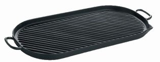 SPECS: Large oval cast iron grill with handles 21 x 9 b - Description: CAST IRON Easy to maintain and nonreactive. It can be used equally well in the oven on stove-top. Beautiful line for tabletop. Exceptional for slow cooking of stews and terrines. Read more...